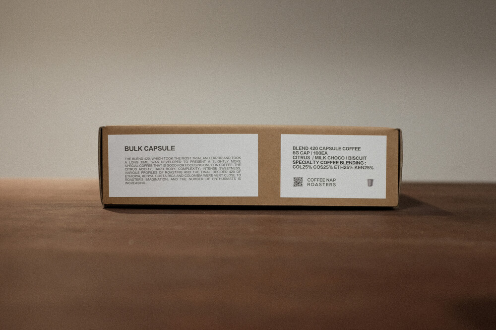 The Blend 420, which took the most trial and error and took a long time, was developed to present a slightly more special coffee that is good for focusing only on coffee. The citrus acidity, hard body, complexity, intense sweetness, various profiles of roasting and the final-decided 420 of Ethiopia, Kenya, Costa Rica and Colombia were very close to roaster's imagination, and the number of enthusiasts is increasing.