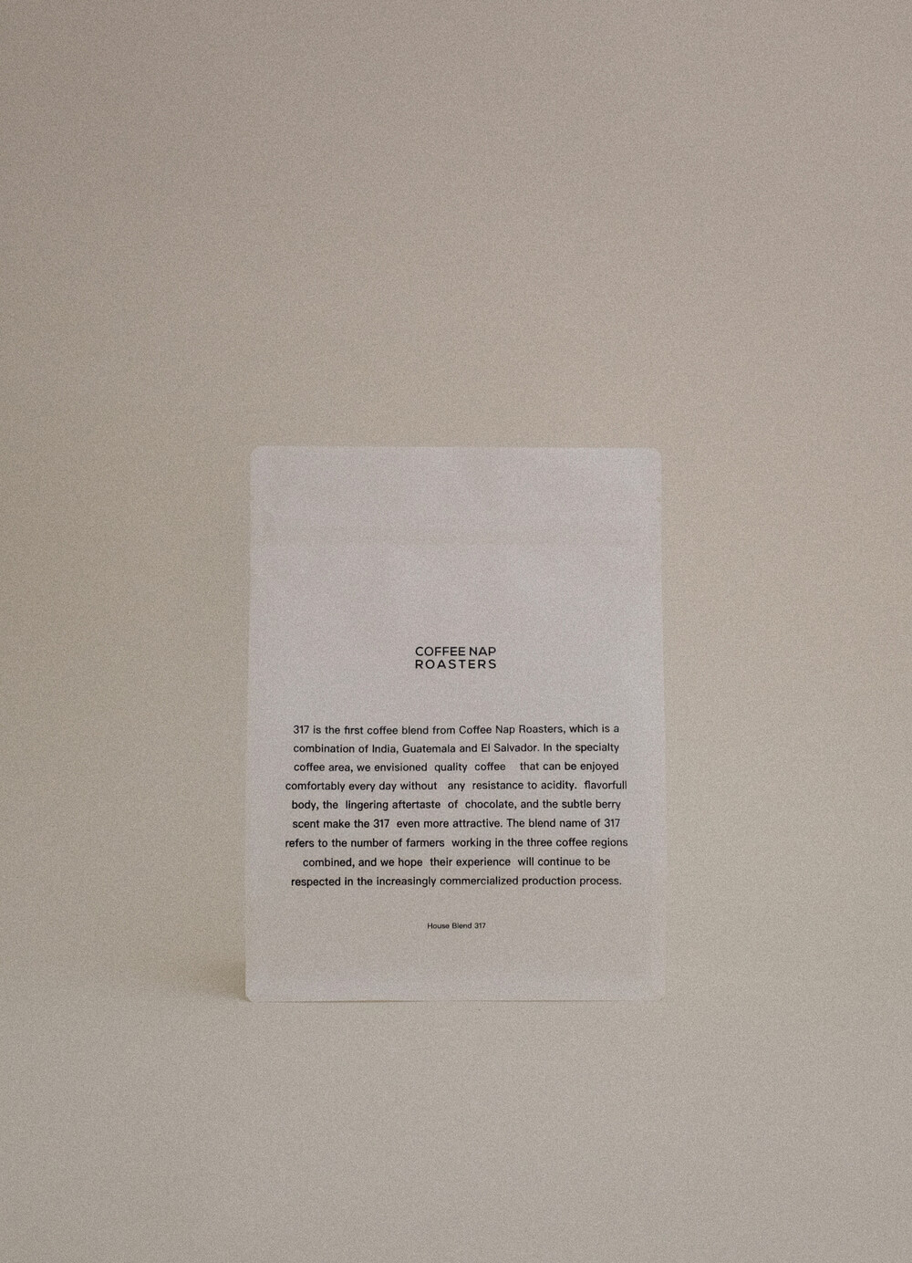 317 is the first coffee blend from Coffee Nap Roasters, which is a combination of India, Guatemala and El Salvador. In the specialty coffee area, we envisioned quality coffee that can be enjoyed comfortably every day without any resistance to acidity. flavorfull body, the lingering aftertaste of chocolate, and the subtle berry scent make the 317 even more attractive. The blend name of 317 refers to the number of farmers working in the three coffee regions combined, and we hope their experience will continue to be respected in the increasingly commercialized production process.