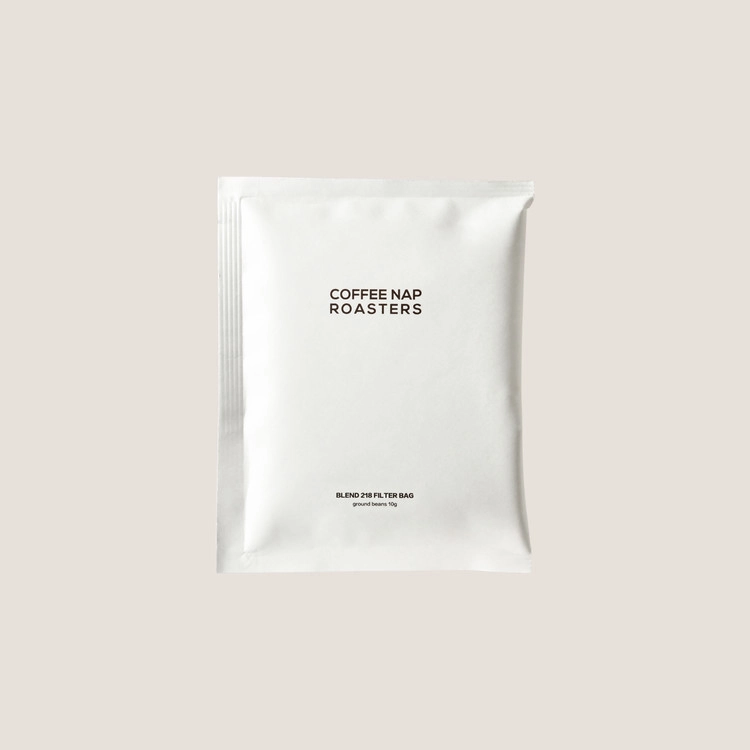 218은 에디오피아 2곳의 농장에서 수확되는 생두를 1:1 비율로 조합하여 생산됩니다. 커피냅로스터스의 두번째 블렌드 커피이며 그간 싱글 오리진으로 제공되었던 생두가 기후변화의 영향으로 기존의 CUP이 저하되는 싱글 오리진의 문제점을 해결하고자 했습니다. 변하지 않는 지속 가능한 CUP을 제공할 수 있을지에 대한 고민을 풀어가며 개발되었고 로스터는 아주 섬세한 로스팅 프로파일에 집중합니다. 은은한 꽃향기 그리고 기분 좋은 과일의 산미, 질 좋은 단맛이 완벽한 블렌드 218입니다. 218의 블렌드 명칭은 여러 나라의 농장에서 일하는 농부 한 명 한 명의 수를 합한 인명 수를 의미하며 점점 상업화 되어가는 생산 과정에서 이들의 경험이 지속적으로 존중받기를 바랍니다.